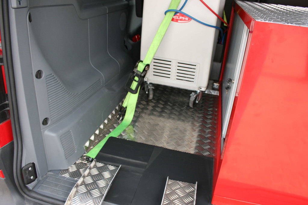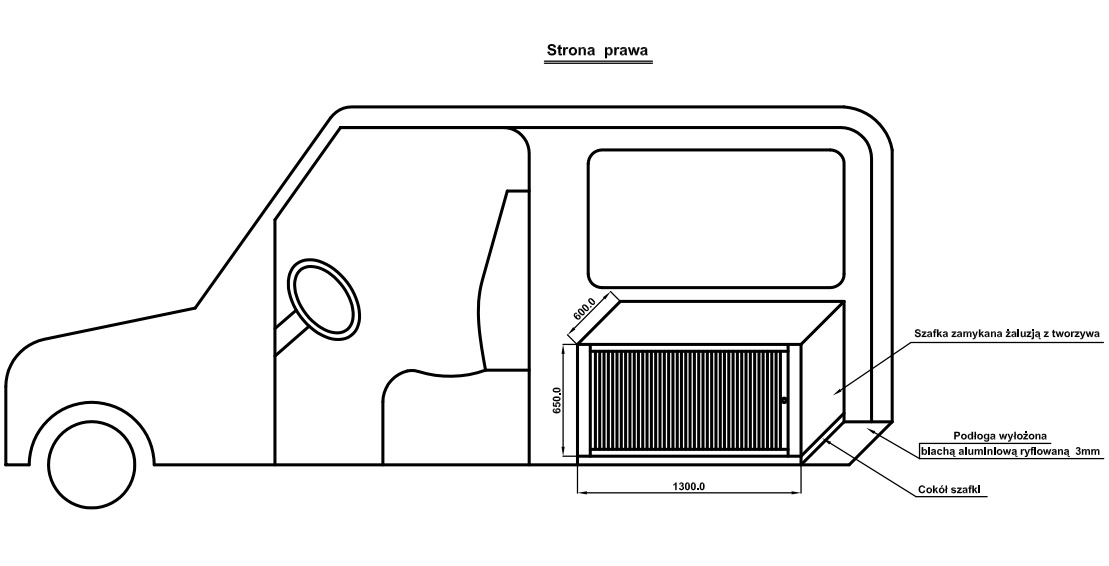 - podłoga wykonana z blachy aluminiowej ryflowanej o grub. 5 mm;